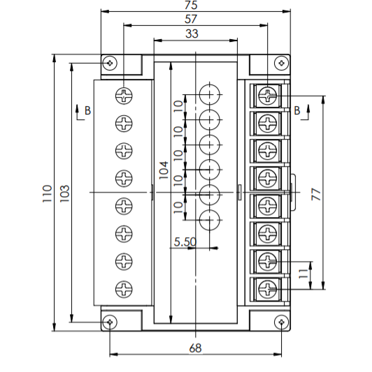 備注:產(chǎn)品最大尺寸:110*75*70.5mm;導(dǎo)軌尺寸:35mm;螺絲孔間距:103*68mm